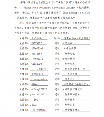 202106-07jinnian金年会信息技术有限公司(以下简称“我司”)于2021年4月取得《传奇》游戏在中国大陆地区的独占性授权。自被授权以来,我司一直积极响应国家知识产权保护政策,始终...
